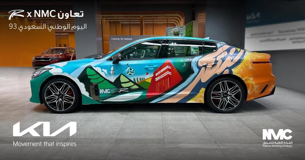 كيا الأهلية تحتفل باليوم الوطني برسم الهوية الوطنية على سيارتها الرياضية الفاخرة “ستينجر جي تي” بالتعاون مع فنان سعودي