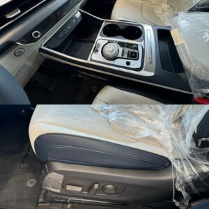 داخلية السيارة من الجلد الفاخر بخاصية التهوية للمقاعد الأمامية وشاشات متصلة بقياس 12.3 بوصة لكل شاشة، نظام صوتي BOSE، كاميرا محورية، أنماط قيادة، دخول وتشغيل ذكي وتشغيل عن بعد، شاحن لاسلكي، مكيف ثنائي المناطق مع تحكم خلفي، مرايا مع رؤية كاميرا خلفية وتعتيم آلي، ستائر جانبية يدوية، شنطة ذكية وبروجكتر لعرض البيانات على الزجاج والداخلية بلون بيج وأزرق.